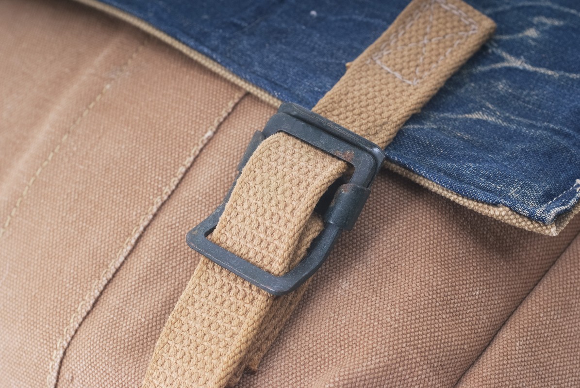 Each bag is individually created using reclaimed original ex-military fabrics and hardware. Every piece of material and component is authentic military vintage - WWII USMC camo, US Navy Denim, US Army webbing straps, pouches, buckles and zips - all put together into totally unique, strong functional designs which look as impressive as they are useful.